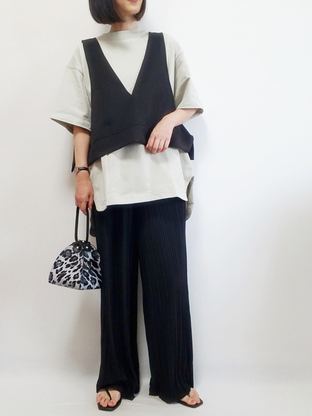 coenのビッグTシャツをベストとレイヤード✨ 淡いカーキで可愛い🍀 Instagram→rii.0409