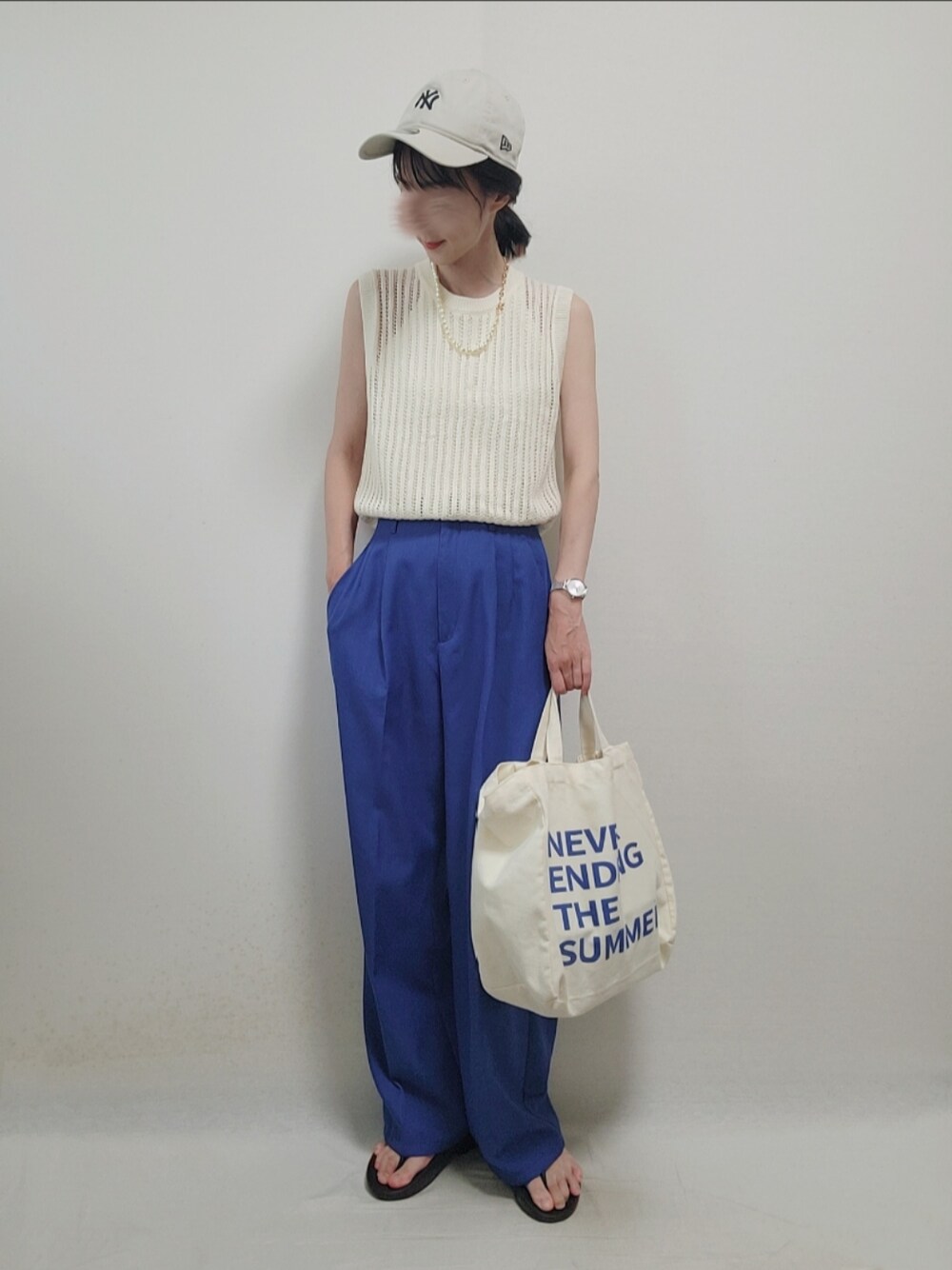 暑いので少しでも涼しそうなコーデにした。 トップス&インナー→UNIQLO ネックレス&パンツ→GU UNIQLOのニットベスト使いやすくてお気に入り❤️