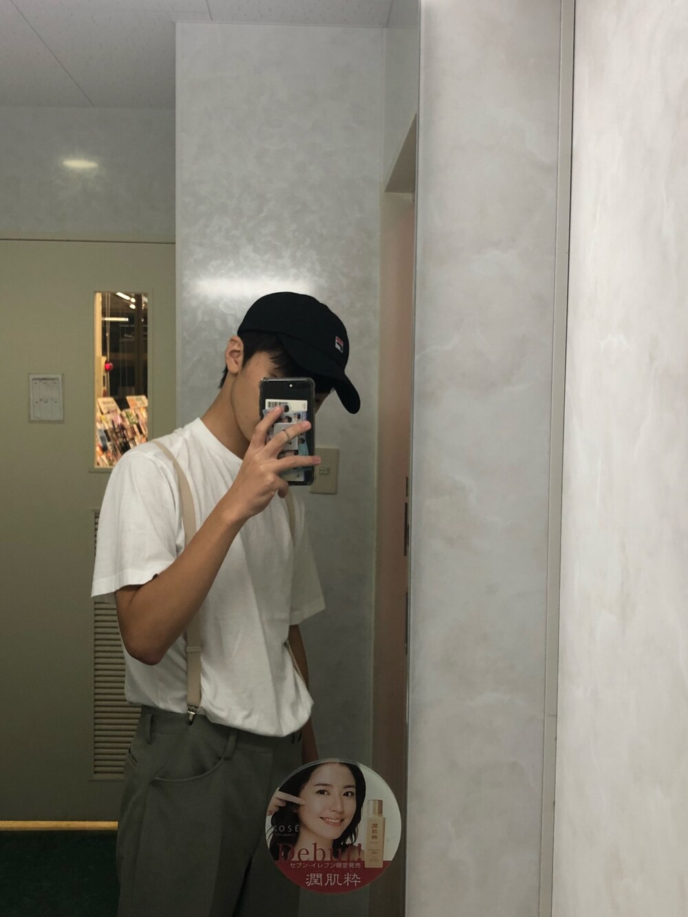 完全プチプラコーデです キャップ 2700円+tax 無地白T 1000円+tax サスペンダー 1600円+tax スラックス 700円+tax