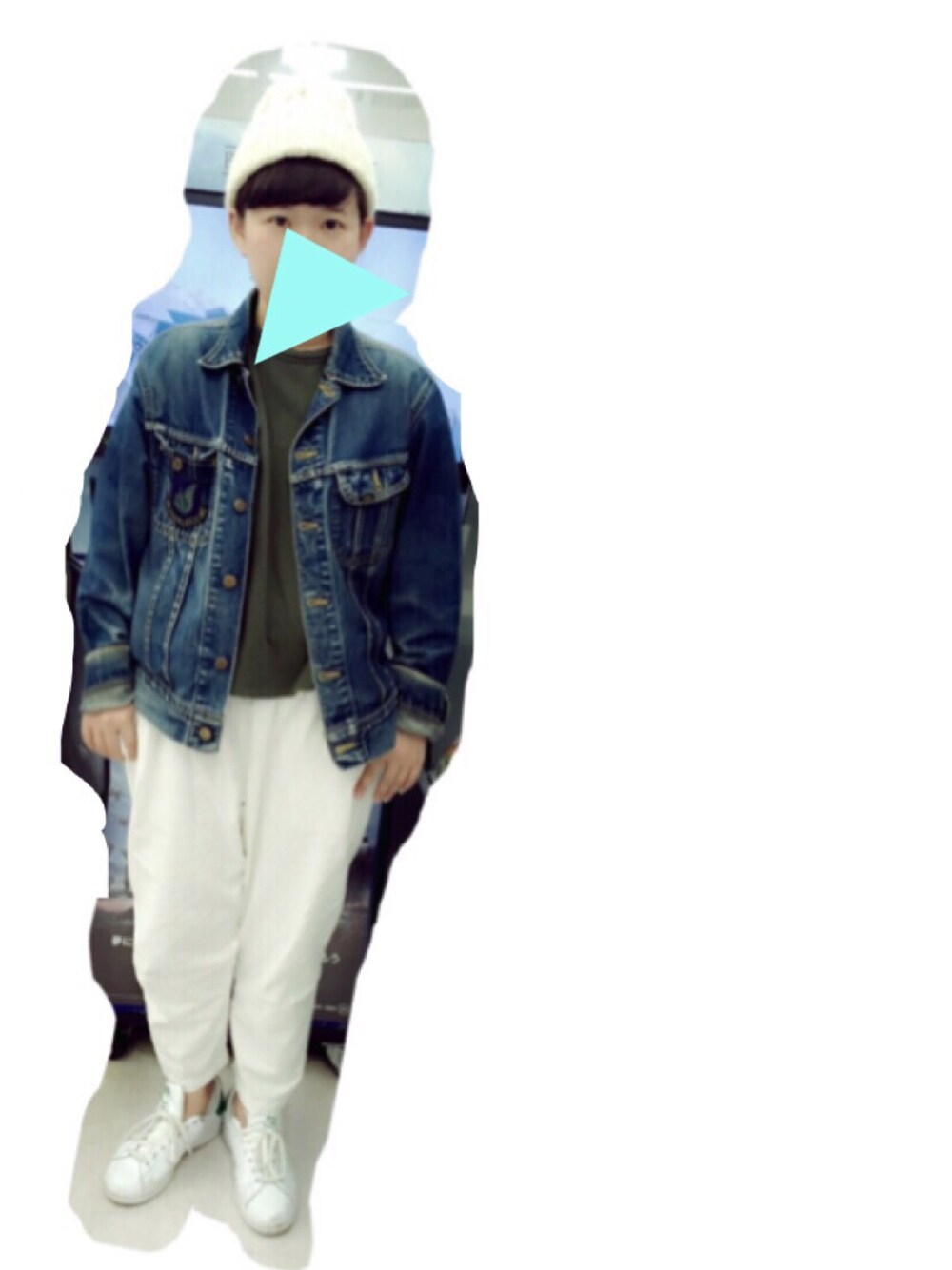 白 と 緑 と カーキ !!! 今日は風が強いから、ニット帽でカバー!