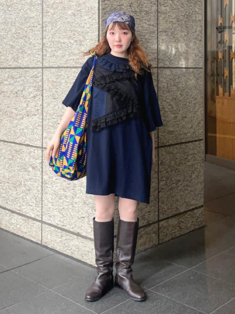 【158㎝/size FREE】今日は《BEAMS BOY》の【別注】《TORI-TO / バイアス フリル BIG Tシャツ》でスタイリング☆ カジュアルだけどレースやフリルが施されているのでガーリーな雰囲気でも着用できます!ワンピースとしてスタイリングしたんですけど、もちろんデニムやカジュアルなパンツを履くのもかわいい!少しキレイめに寄せるならローファーや革靴で足元を締めると良さそうです◎
