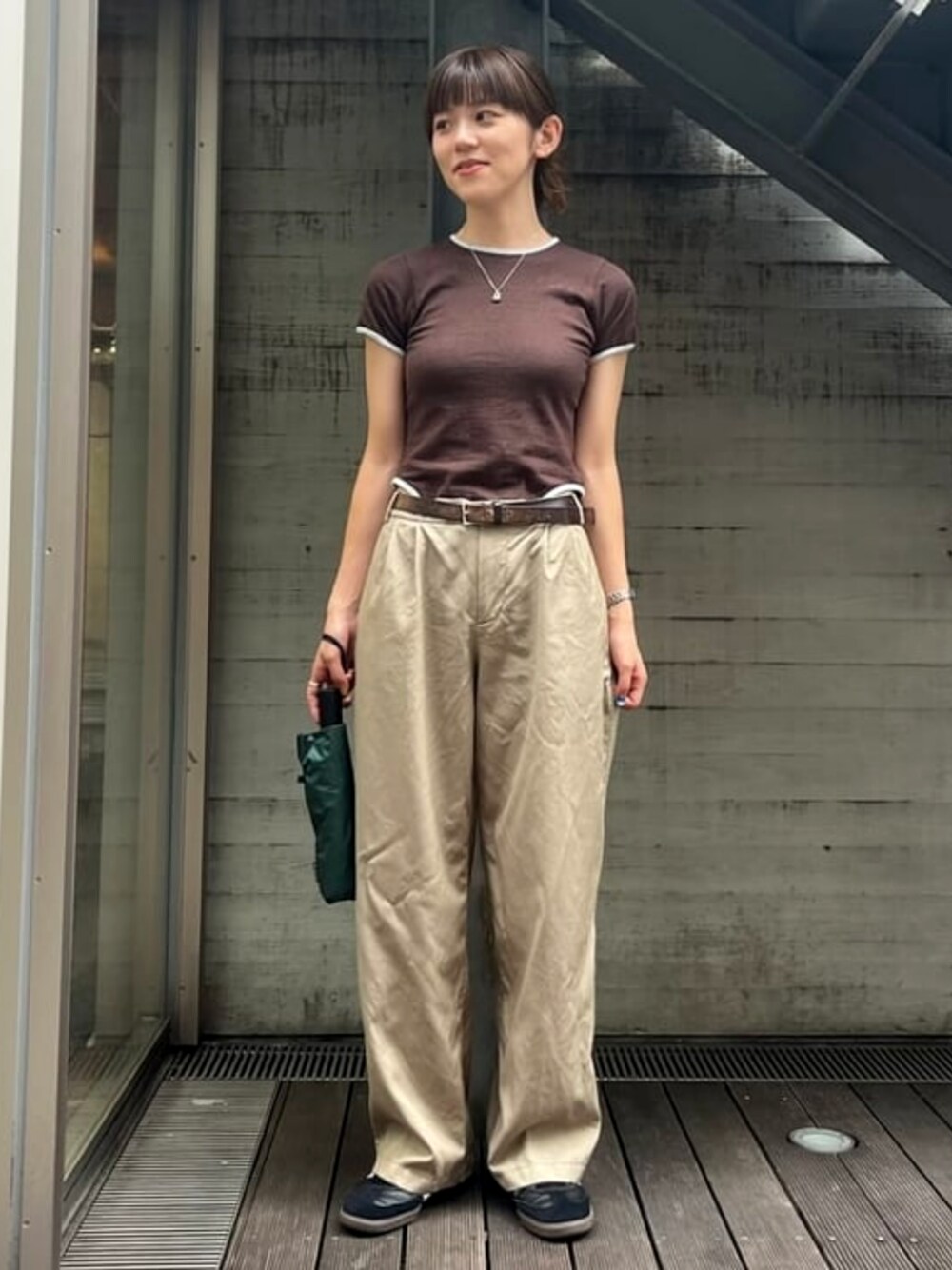 出勤服〜!【Pilgrim Surf+Supply】薄手のツイルパンツ、シンプルだけど綺麗なシルエットが大人っぽくてオススメです。【fifi Original Collection】サイドの切れ込みがポイント!ローライズのパンツと合わせてチラ見せするのがカワイイ〜!【bpr BEAMS】晴雨兼用の折り畳み傘がこの時期手放せません。ワンタッチで開閉ができ、折り畳み傘なのにしっかり体をカバーしてくれる大きめサイズ!常に持ち歩いているマストアイテムです!