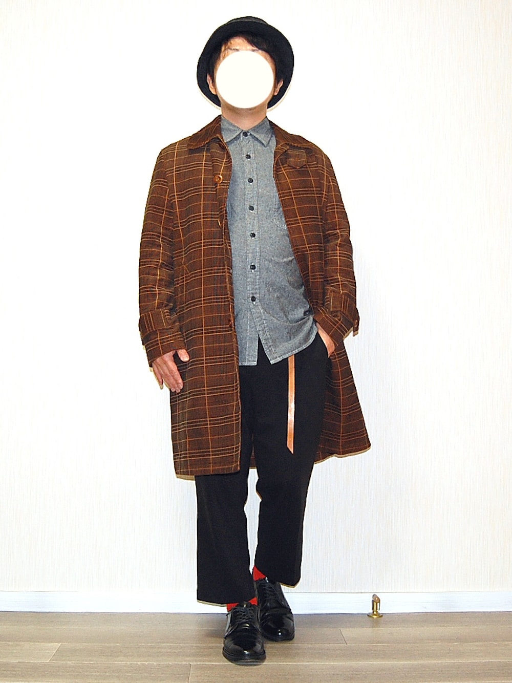 🐈ちゅうたろう🐈のステンカラーコート「チェックコーデュロイステンカラーコート」を使ったコーディネート
