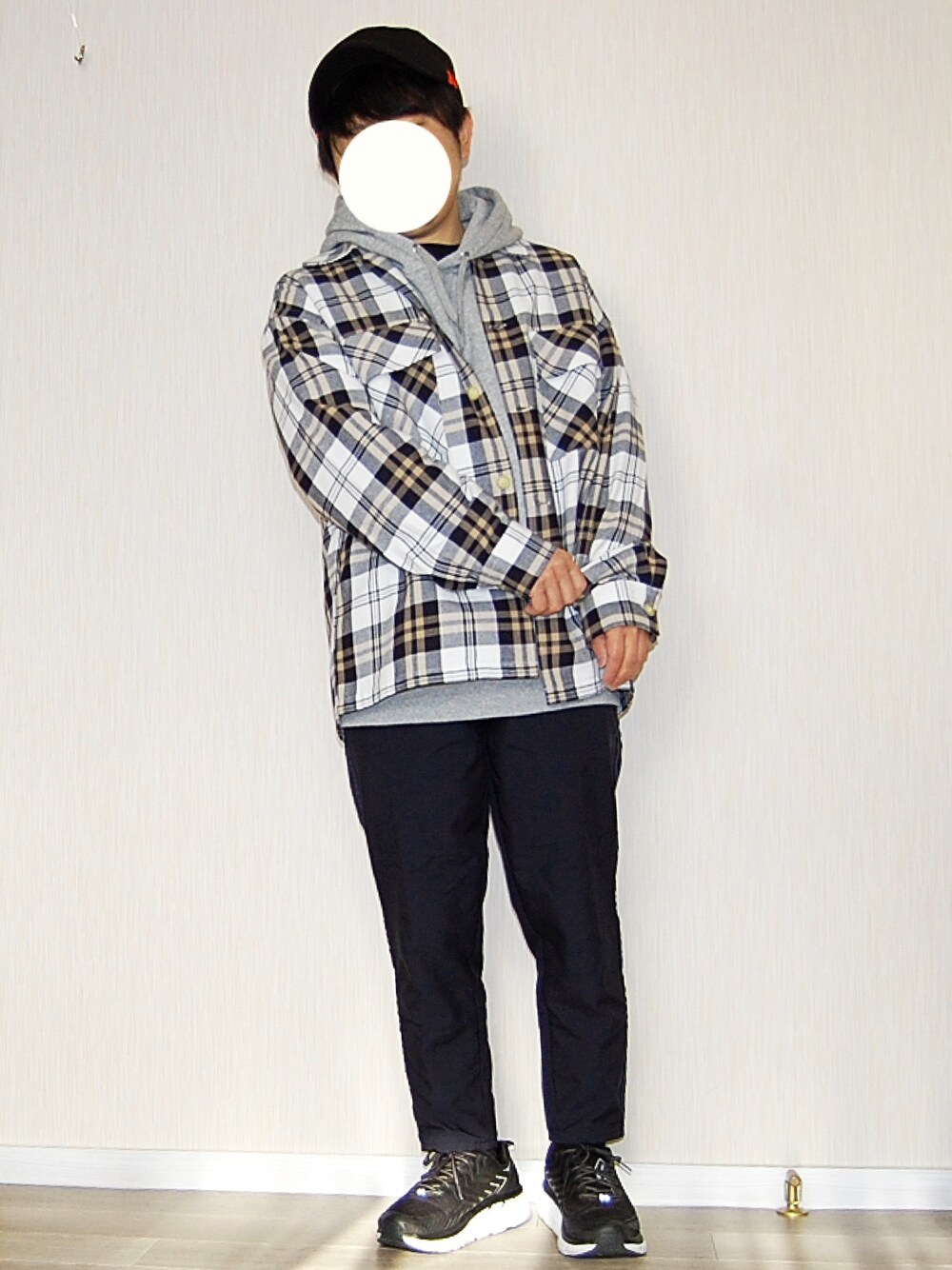 大掃除が終わらないボスケテ🐈💦 ♯モンハンのやり過ぎ 🍀gu ヘビーツイルシャツアウター(長袖)(チェック) 🍀gu スウェットプルパーカ(長袖) 🍀adidas 古着のナイロンジャージ
