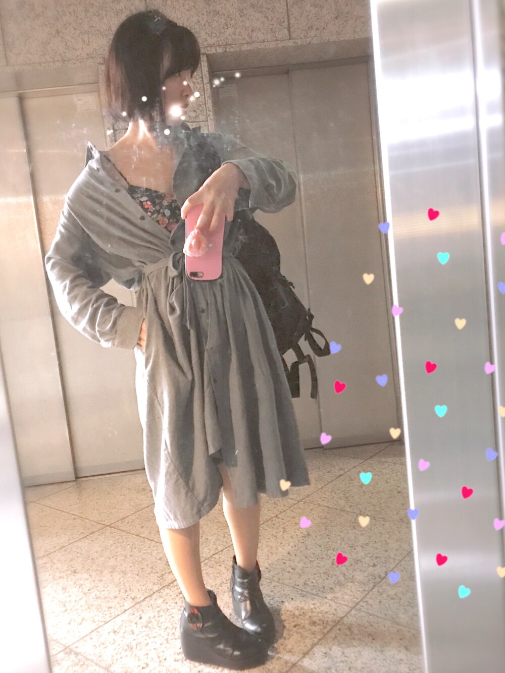 ユニクロのワンピース、 ウエストから下でボタンをかけ違えることで、アシンメトリーに🌹 ロキエのインナーお気に入り、、