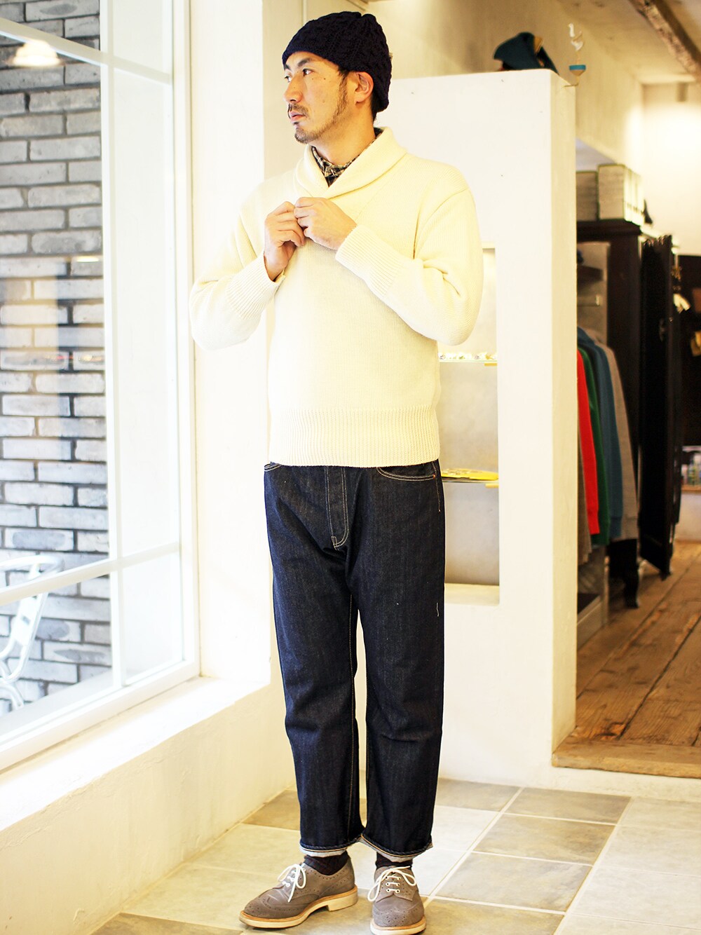 シーノートのニット/セーター「Submariner Shawl Collar」を使ったコーディネート