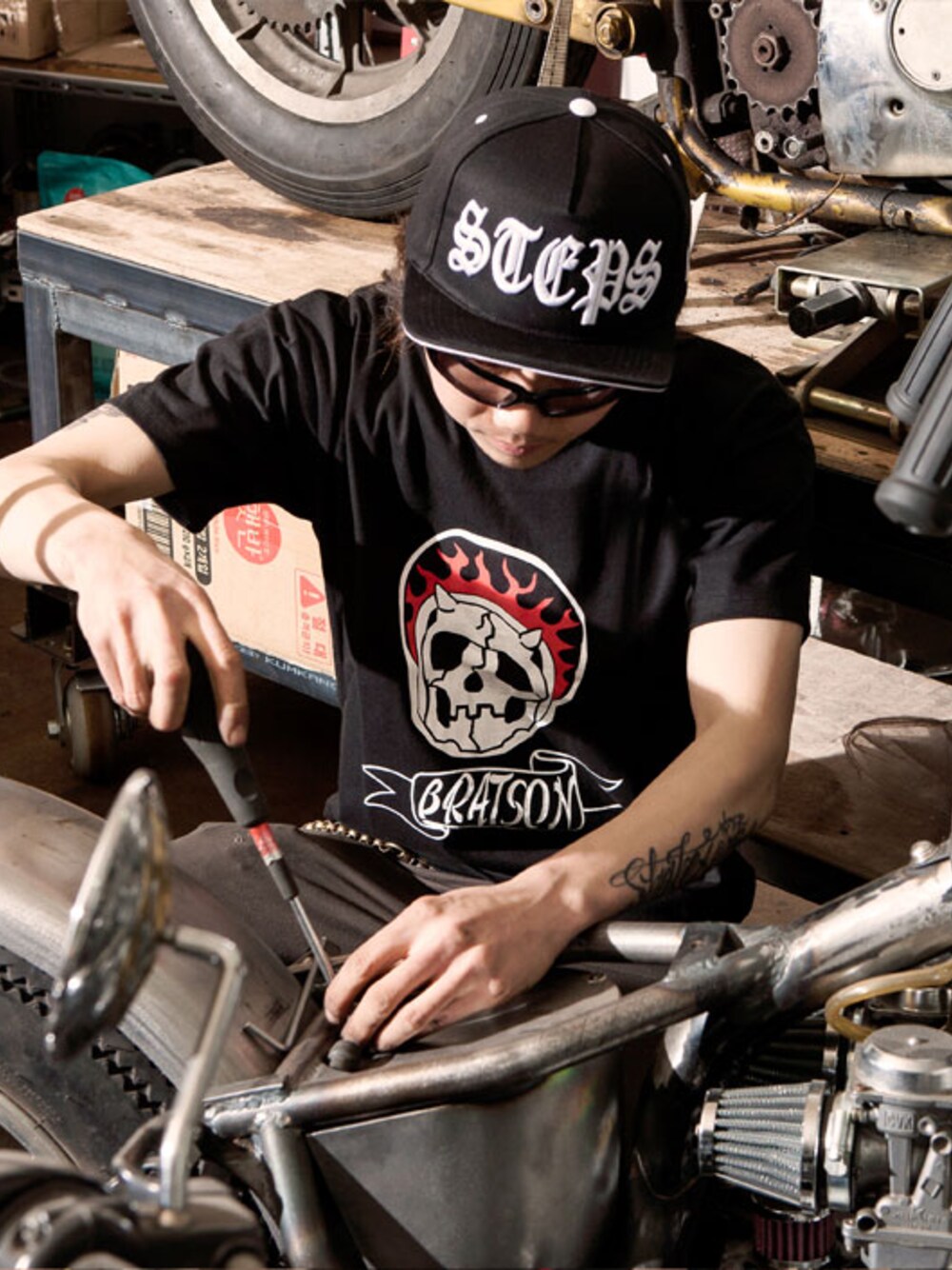 BRATSONのトップス「BRATSONBIG SUKLL T-SHIRTS Black」を使ったコーディネート