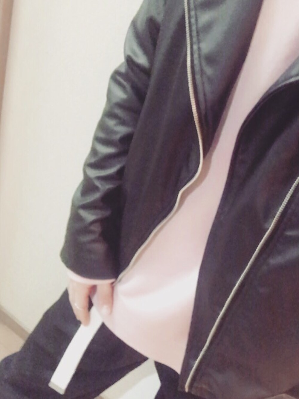 インナーはH&Mのピンクスウェット アウターはSPINNSのダブルライダース パンツはWEGOのワイドパンツ ベルトはniko and…の白ガチャベルト こんな感じの休日コーデ\(^-^)/