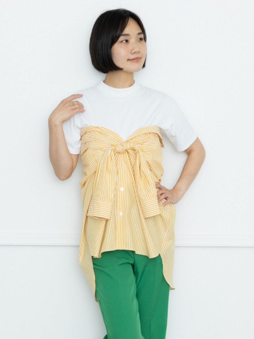 BRICK&SONS official(TOKYO SHIRTS)のシャツ/ブラウス「リラックスバックプリーツシャツ<イエローストライプ>」を使ったコーディネート