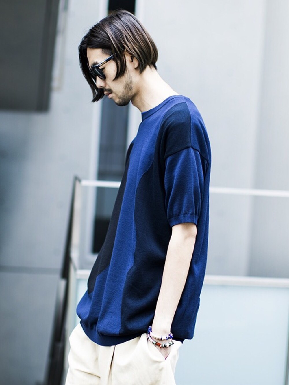 caprice styling Dulcamaraのアブストラクションニット 適度にゆるいシルエットと生地が厚くないので着心地が良い1枚です。 theSakakiのイージーパンツはアンティークの生地を使った限定20着のアイテムです。 トランクスが内蔵された二重構造で独特なシルエットで 夏らしい上品な大人のコーディネートになっています。