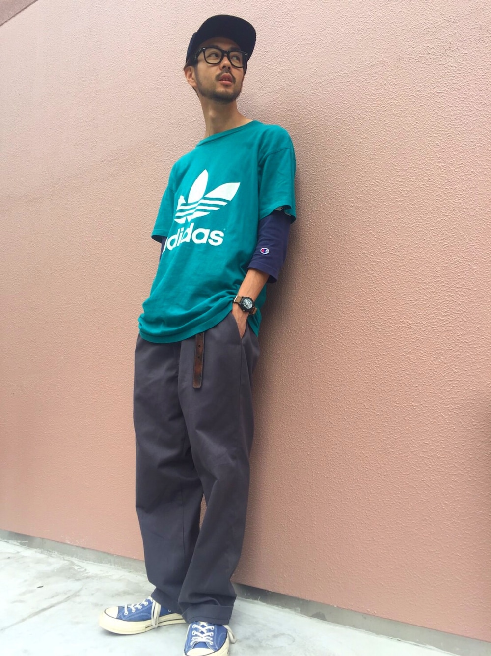 アディダスの90sビッグTとチャンピオンのカットソーのレイヤード❗️ ご予約お待ちしてます(^^) Instagramからも大歓迎です! @ken_bridge