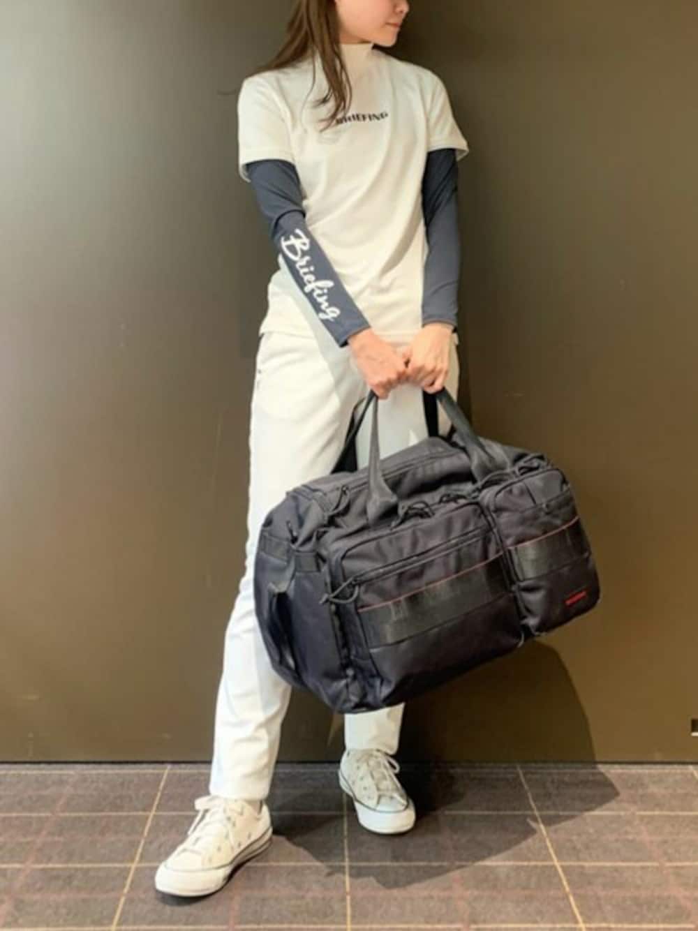 『WOMENS TOUR HIGH NECK』 吸水速乾性に優れて汗をかいてもべたつかないので快適な着心地です。 袖のさりげないステッチがポイントになってかわいいです! 『WOMENS UNDER SHIRT』 袖のロゴが存在感があり半袖アイテムのレイヤードスタイルにもオススメです。 日焼け防止に◎ 『CLASSIC CLUB BOSTON AIR』 中空構造の高強力糸を採用しているので軽量かつ強度に優れたボストンバックです。 ゴルフ以外でも旅行用等にも使って頂けます! ■着用アイテムサイズ■ 【TOPS:S】 【BOTTOMS:S】 BRIEFING GOLF 日本橋高島屋S.C.店