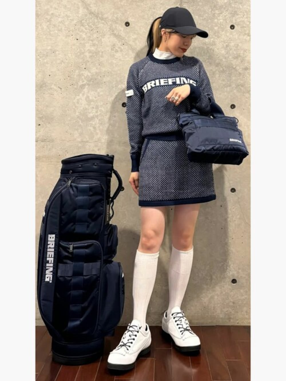 【着用アイテム】 [【24FW新作】WOMEN'S MERINO WOOL LOGO CREWNECK KNIT] : NAVY/Sサイズ [【24FW新作】WOMEN'S MERINO WOOL LOGO KNIT SKIRT] NAVY /Sサイズ [【24FW新作】CL WOMEN'S NYLON PONYTAIL CAP]: NAVY/FREEサイズ [CR-6 #02]: NAVY [CART TOTE ECO TWILL]: NAVY [DANNER LT GOLF LEATHER-2] WHITE /25cm 【コメント】 [【24FW新作】WOMEN'S MERINO WOOL LOGO CREWNECK KNIT] 生地感:柔らかい 透け感:なし 伸縮性:あり これ一枚でコーディネートが完成☺︎ うろこ状の表面が湿度の増減によって開閉し、衣服内の湿度を調整することで、汗冷えなどを防ぐ機能も兼ね備えています! [【24FW新作】WOMEN'S MERINO WOOL LOGO KNIT SKIRT] 生地感:柔らかい 透け感:なし 伸縮性:あり 身体に馴染むしっとりとした柔らかい肌当たりで、直接肌に触れる場合でもウール特有のチクチク感が無いです☺︎!セットアップでの着用がおすすめです! [CART TOTE ECO TWILL] 軽くて、収納できるポケットがたくさんあるので、使いやすいです。ショルダーもついているので、2wayタイプです☺︎メインはジップもついてるのでカラス防止もバッチリ! BRIEFING 表参道ヒルズ店