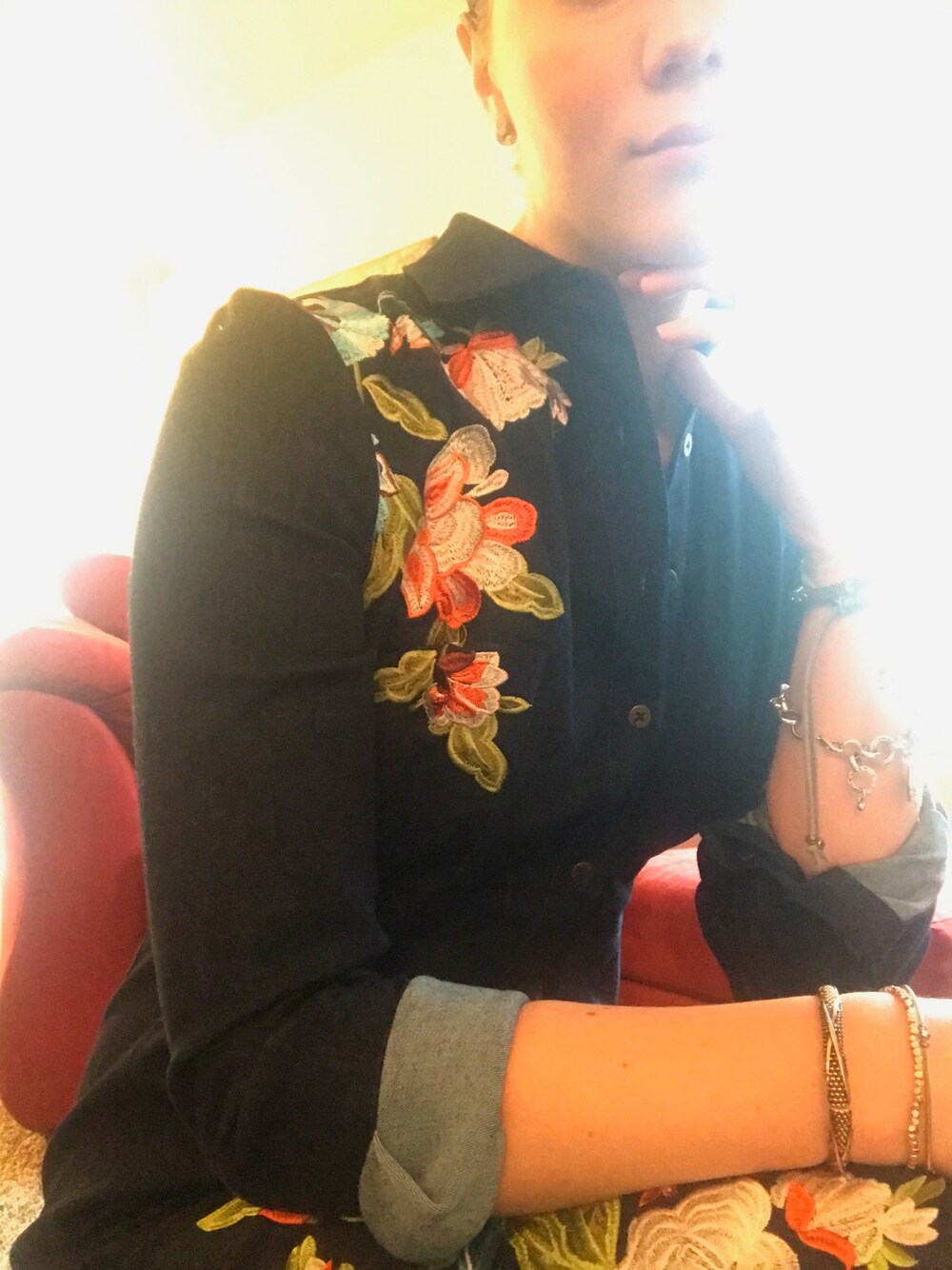 As my husband would say "Denim, Denim, Denim" ;). This is a trend that fits within the definition of American Classic. I say to all friends of fashion to make this denim trend your own. The best part of this trend is that it isn't specific. So take that opportunity to wear denim your way, with your style and your personality. In honor of the of the denim trend I snatched this awesome dress up from the close out sale at New York & Company. With the fitted structure of the dress and the embroidery detail, this is how I do denim!