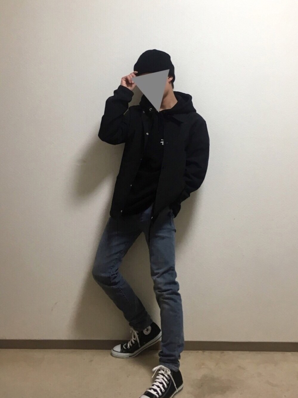 #ナノユニバース ビーニー #stussy パーカー #GU コーチジャケット #H&M スキニー #コンバースオールスター