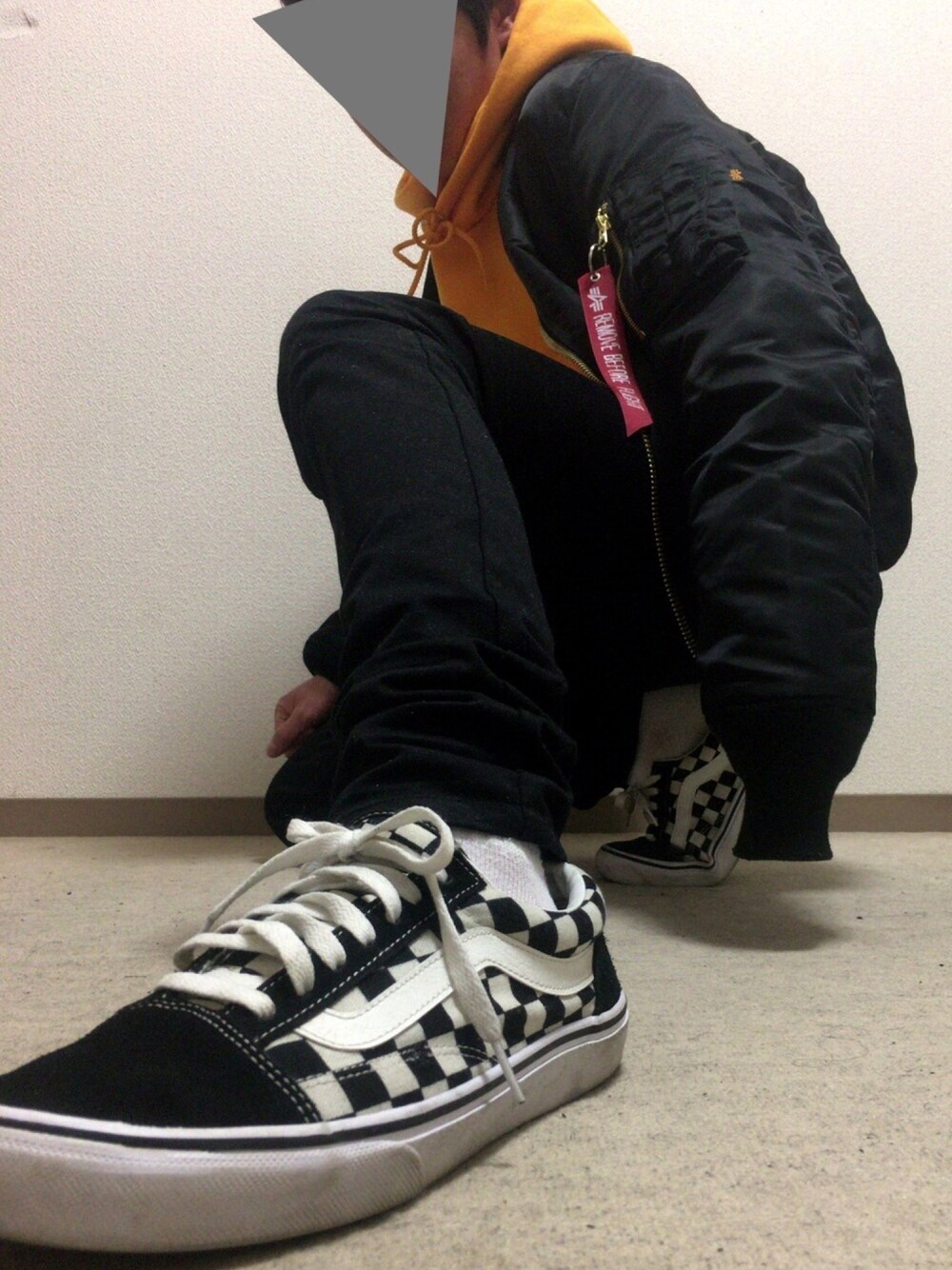#champion パーカー #ALPHA MA-1 #H&M 黒スキニー #vans オールドスクールチェッカー