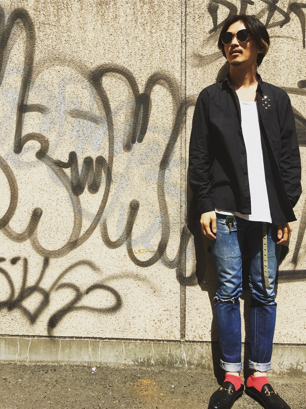 アシスタントちゃんと物々交換したギャルソンのシャツ👔 安定のワンちゃんのTシャツ👕 ボロボロに破れても結局はいちゃうHYKEのデニム👖 新しく仲間入りしたGUCCIの靴👞 シンプルコーデ🙌