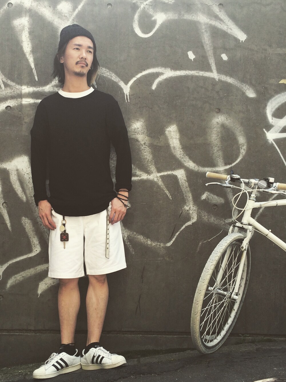 天気がいいのでショーパン☆ 半袖半ズボンは嫌なので暑くても 上は長袖笑 白黒でまとめー🎶