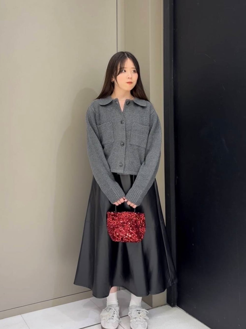 ご覧頂きありがとうございます🍒ᩚ レザー大好きな私がDOORSからでたレザースカートも履いてみました!!! KBFのレザースカートと比べると生地に張りがあり、しっかりとAラインに広がってくれる印象でした! バッグを赤のスパンコールにしアクセントを入れることで、メリハリをつけました!! ご参考になれば嬉しいです🥰