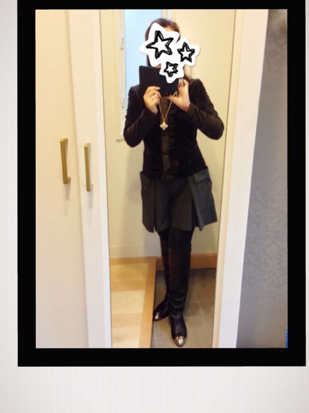 ニーハイブーツに合わせて。 タイツは今年流行りのコットンタイツ
