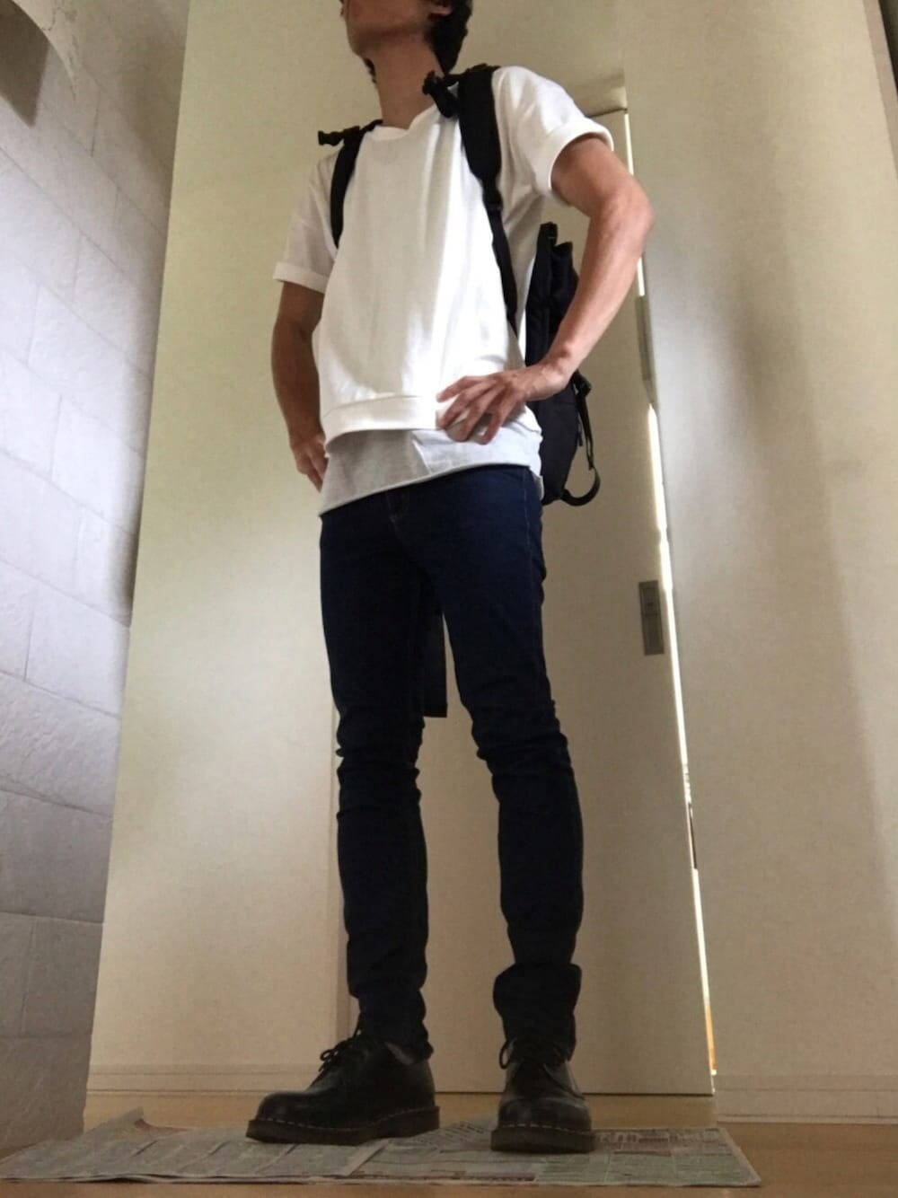 じじのタンクトップ「ツインロールネックタンク 裾ラウンドロングタンク(Heather mix)」を使ったコーディネート