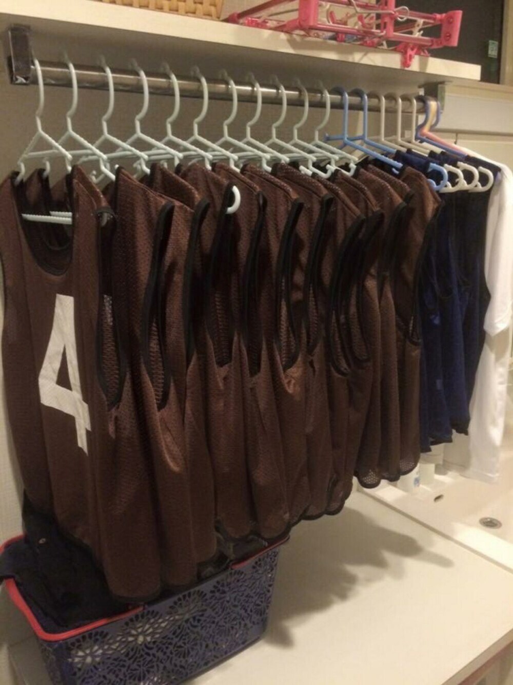 先日バスケの大会で優勝しちゃいました。 そしてビブスを借りてたので、全員分洗って干したら… ユ○クロの陳列か! って1人で言って笑ってやったさ! もちろんハンガー足りんし! そんな俺は40歳w