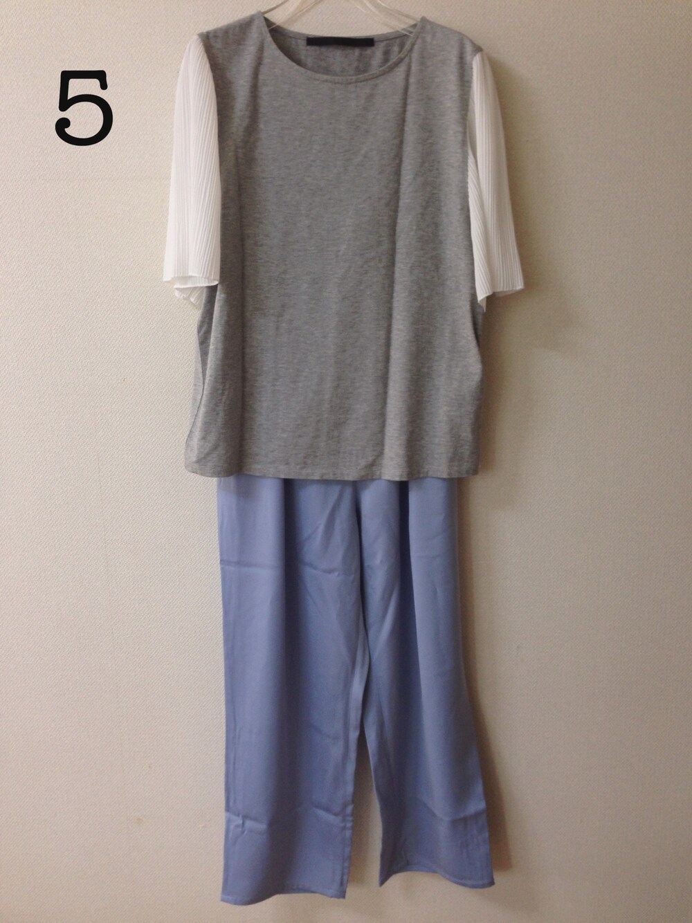 トップスの袖にホワイトのプリーツフリルがついていて、シンプルになり過ぎないのでお気に入りのアイテムです🌻 ○ボトムス○ 「1」と同じものを着用