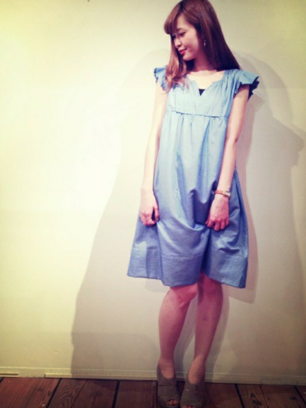 ソリッドで爽やかなカラーリングワンピース。上に軽ジャケットなど合わしたスタイリングがおすすめ
