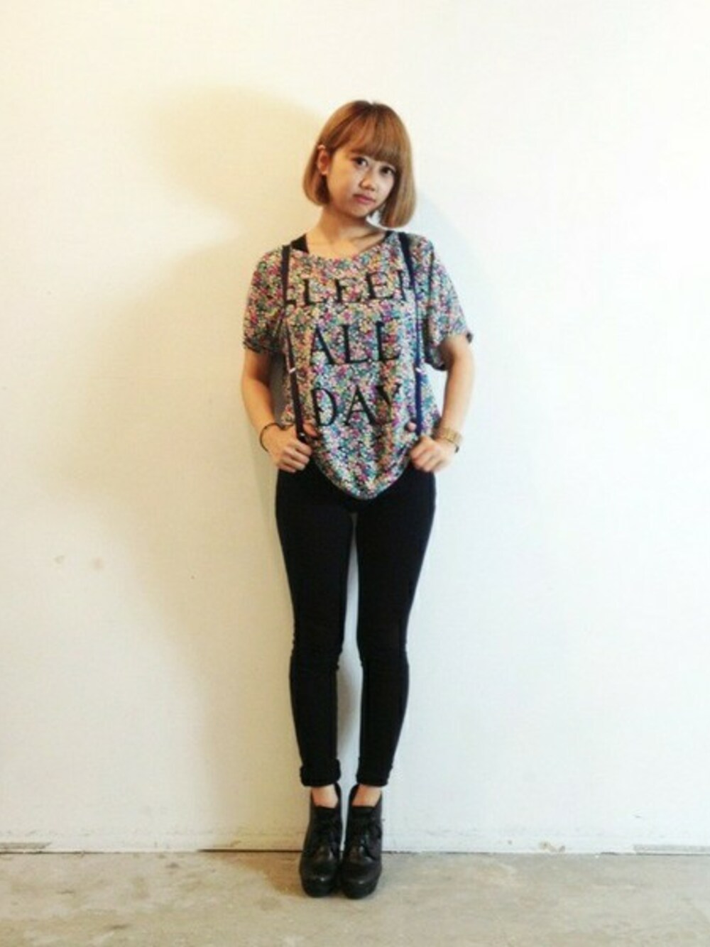 お花柄のTOPSをスキニ―と合わせてマニッシュスタイル☆