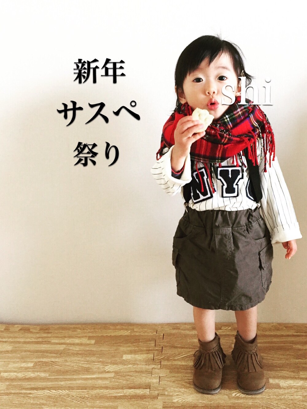 新年サスペ祭りに参加します✨ 主催者のshiinaちゃん、よろしくお願いします❤️ うちにある唯一のサスペンダー💦 黒の普通のです😅 ズボンが緩い時に使う実用性重視で買ったものでオシャレの欠片もありません💧 しかもよく見えてないけど😁 サスペンダーするためにトップスインするから新鮮な感じになりました❤️ ボーダー×カモフラにすれば良かったとみんなのリンク見て思いました💦 娘、胃腸炎になってちょっと痩せたかもなぁ😱 この顔、口すぼめてるから余計に細く見える〜😭 着てる服も100とかででかいから更に😣 足も太ももとかありません💦 ふくらはぎと同じくらいの細さ。 でもやっと治ったし、バクバク食べ始めたから太って欲しいなぁ😆💕