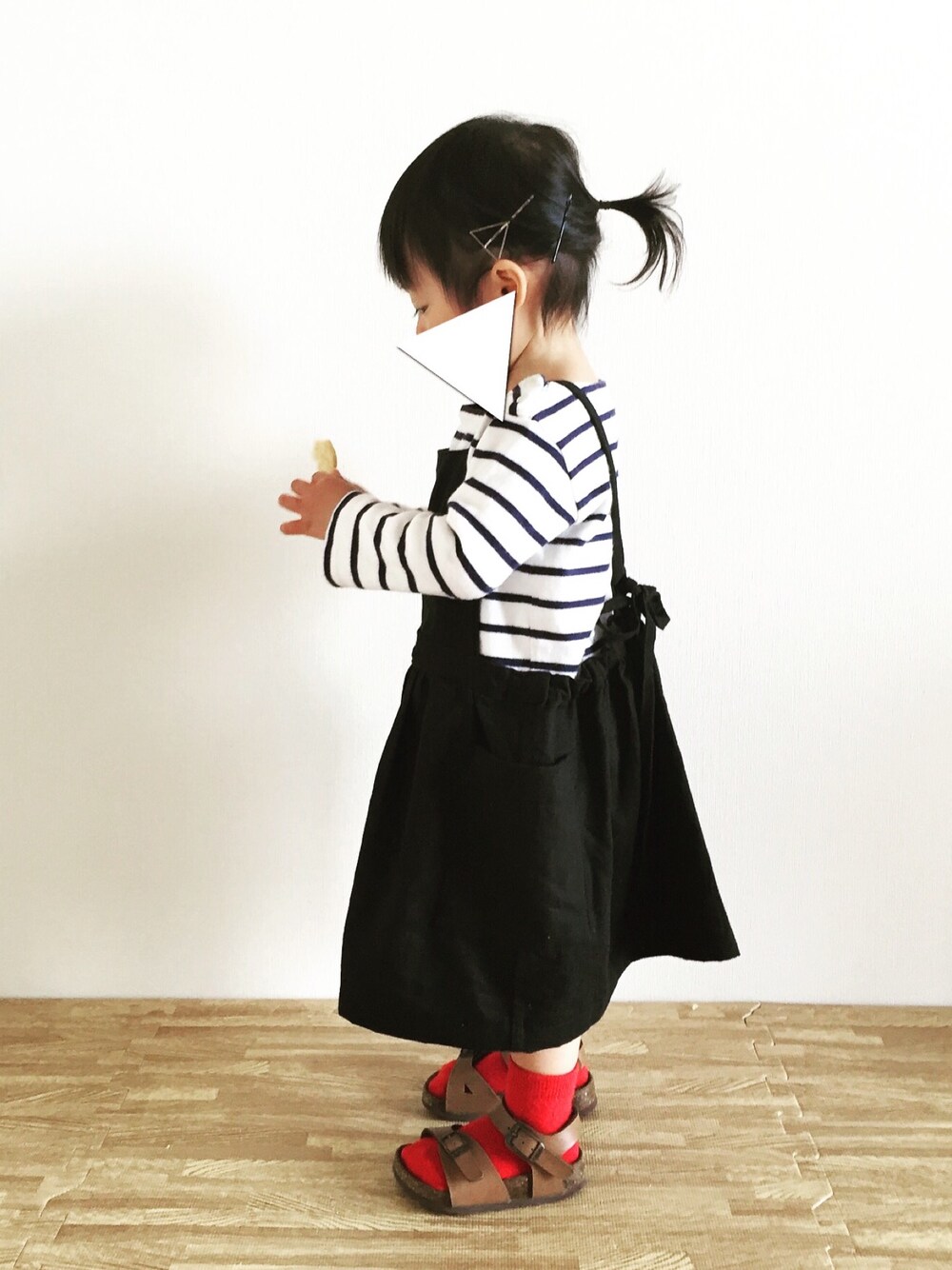 ハンドメイドのエプロンワンピース✨✨ 赤い靴下をポイントに😊