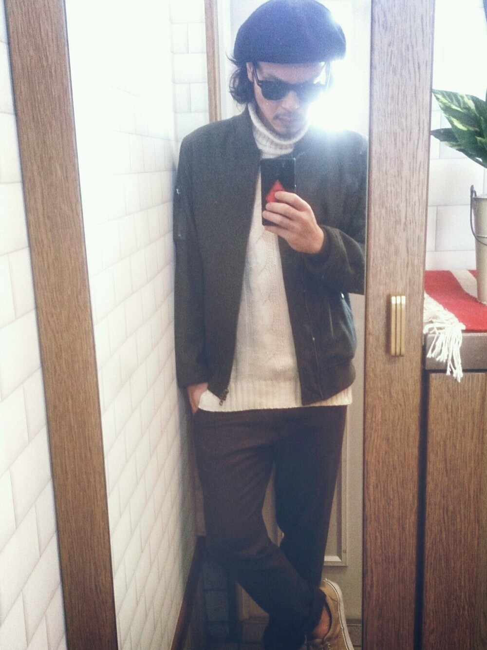 自分には珍しくカーキ×ブラウン合わせで、そしてベレー!! こないだから若干…痩せました♪ 分かりづらくてすいません(^-^; オレ顔怖っww