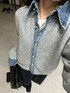 S(BONJOUR SAGAN)のカーディガン/ボレロ「デニム異素材ドッキング 襟付きニットカーディガン」を使ったコーディネート
