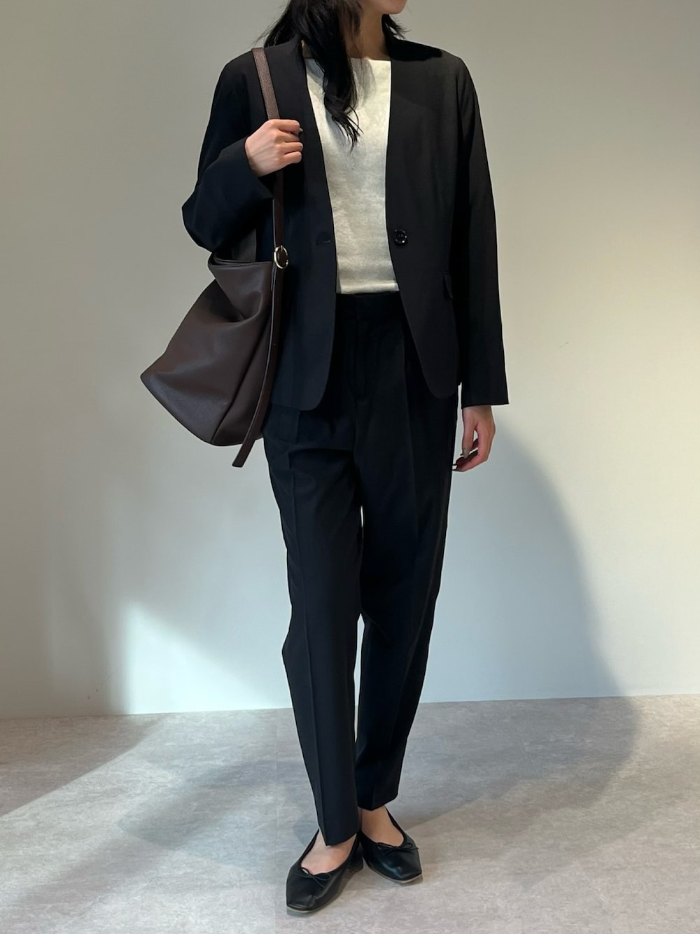 🏷️RIRIYANO 《洗える》2点テーパードパンツスーツセット(ノーカラージャケット+テーパードパンツ)【RIRIYANO】