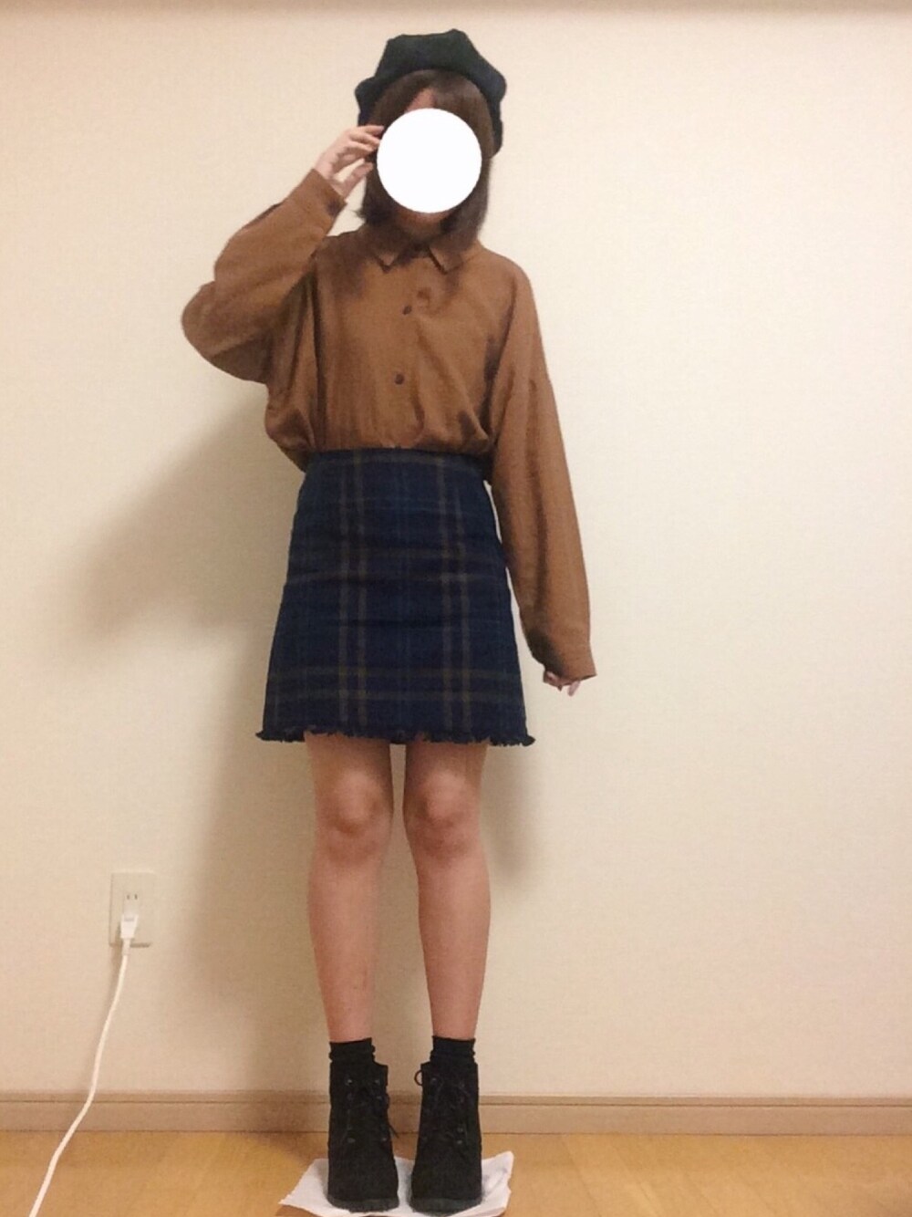 このシャツ、後ろがリボンになっててめちゃくちゃかわいいんです💓 韓国通販はまりそうです👏👏 あとGUのスカートも一目惚れして買いました😊 茶色と緑のチェックなんですけど画像じゃ分からないですね😭 160㎝でSはいてます👍(参考までに💭)