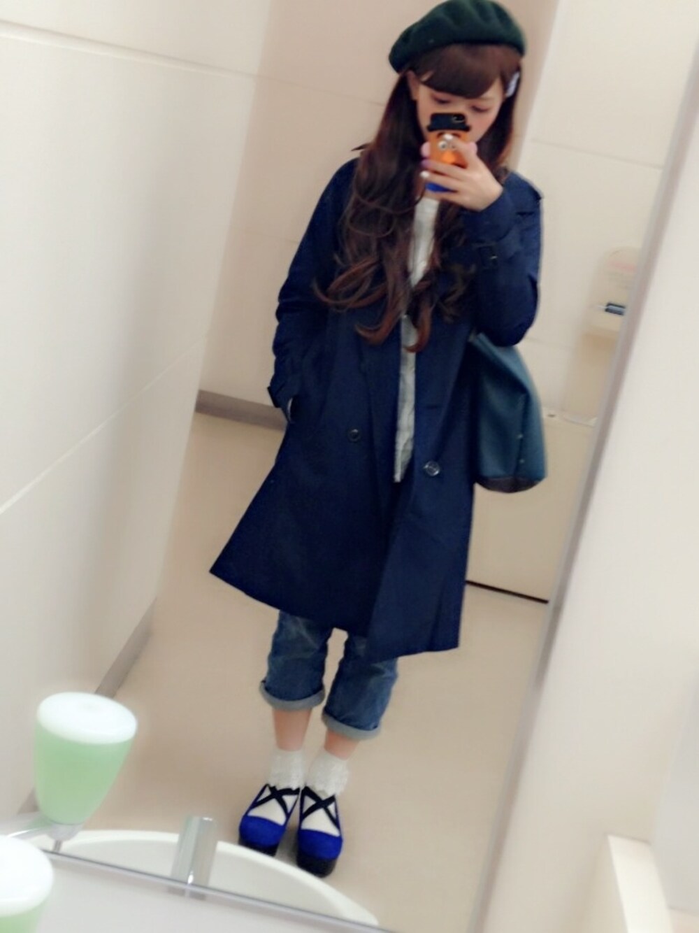 ベレー帽とカバンを 深緑で合わせてます(´-ω-`)