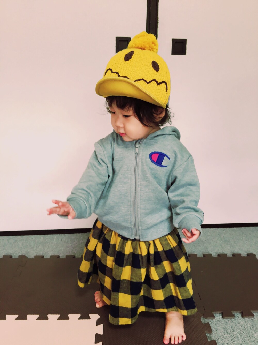 WEAR見ててチャンピオンのパーカーが欲しくなり買いました。全部子供服のbirthdayで買いました。カジュアルでちょびっとボーイッシュ。 ※キャップのつばはワイヤーが入ってるので自由自在。