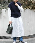 a.のワンピース「『Sサイズ/低身長向けも展開』ざっくりニットベストxシャツワンピースセット」を使ったコーディネート