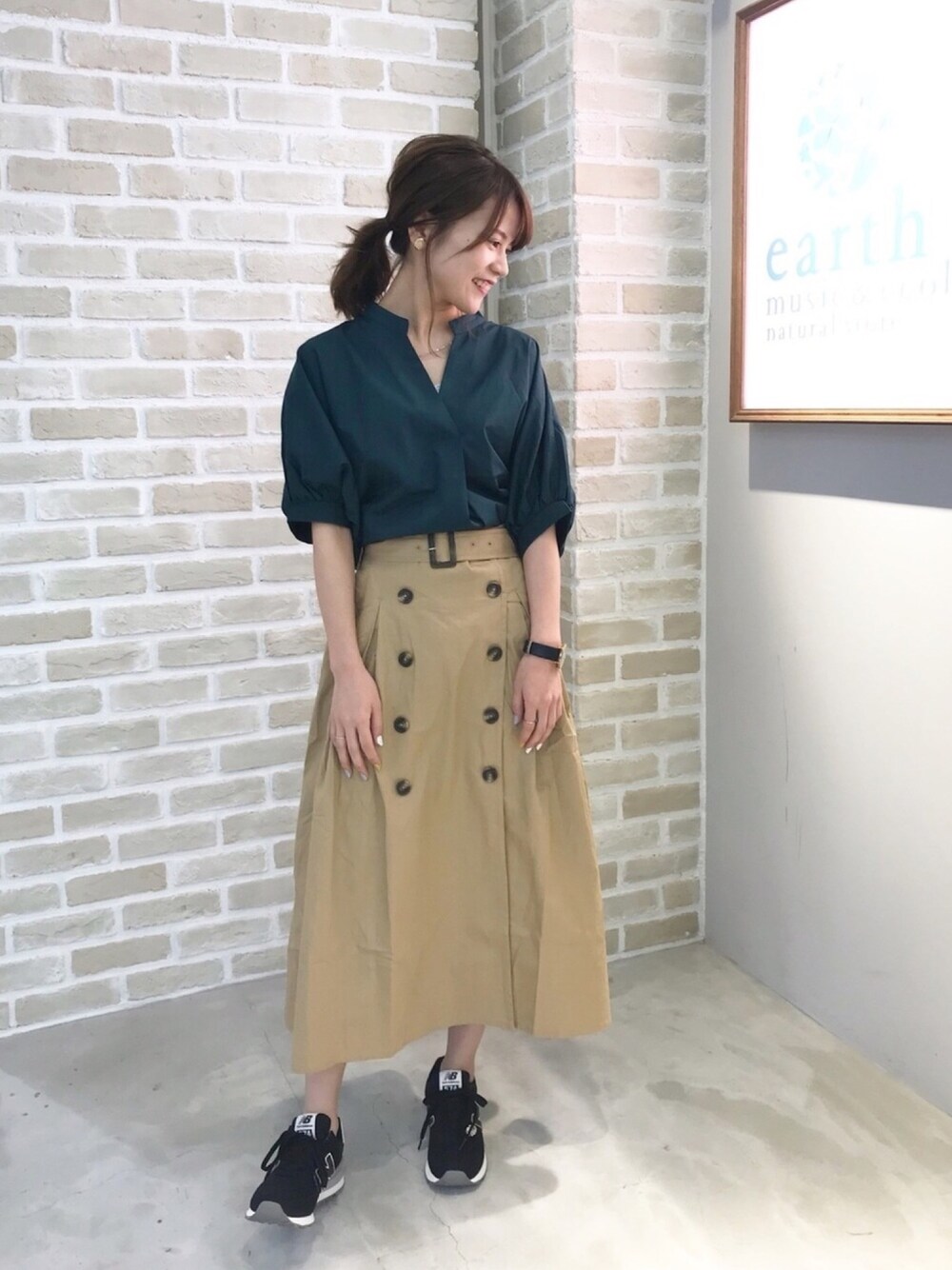 今年人気のトレンチスカートは綿100%で肌触りがいいです💓 ドルマンシャツは首元が丸く、かっちり感出すぎず柔らかい雰囲気に!🌟 抜け襟にもなります◎ あえてスニーカーで外しました👟