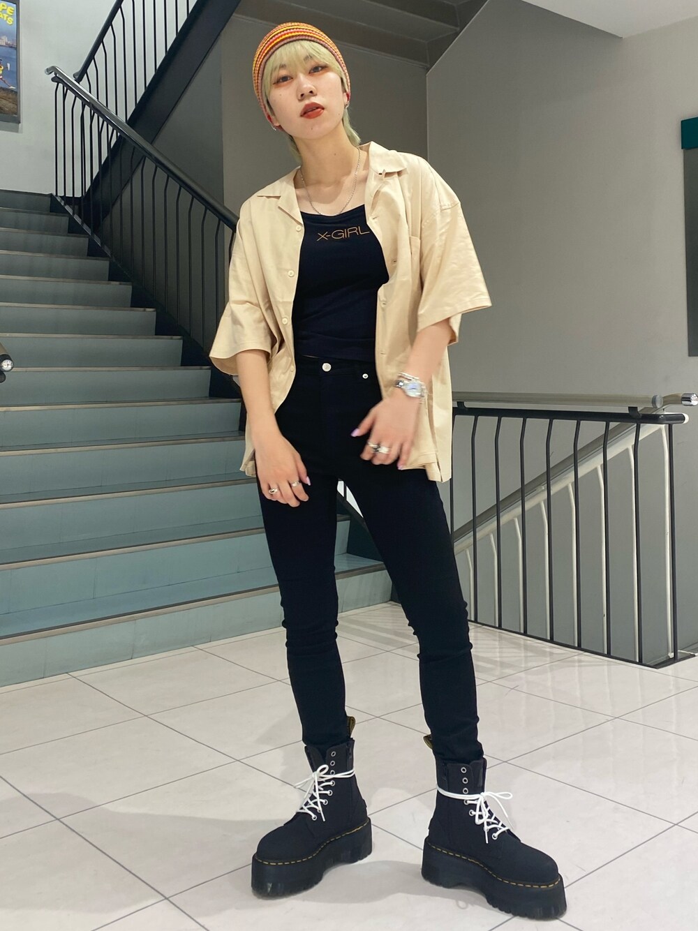 早川 弥吹のニットキャップ/ビーニー「STRIPED WAFFLE KNIT CAP」を使ったコーディネート