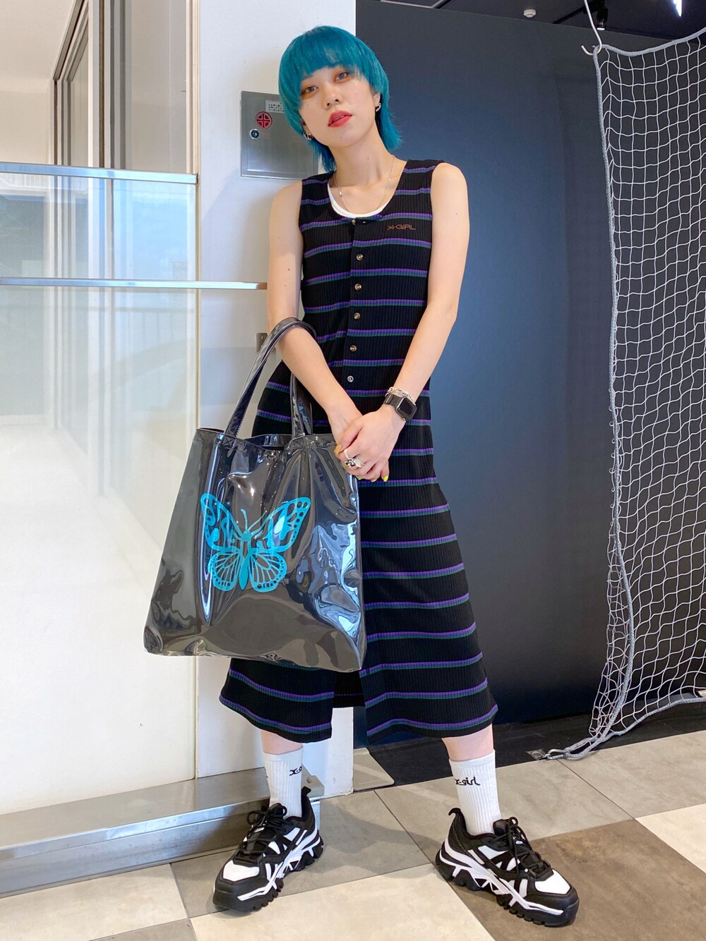 早川 弥吹のワンピース「MULTI STRIPE DRESS」を使ったコーディネート