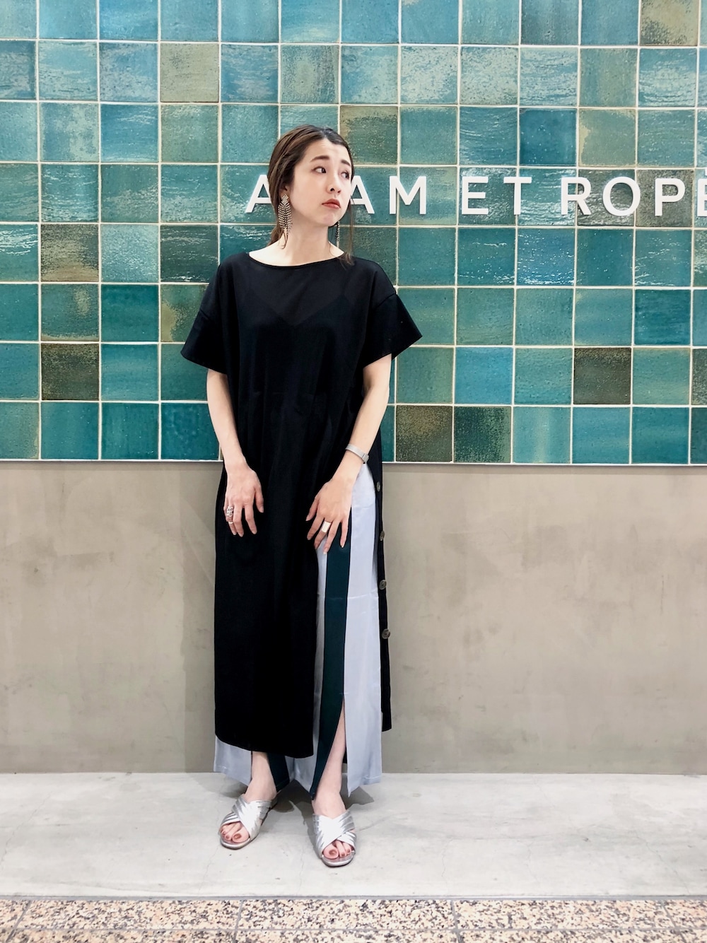 SAKI(ADAM ET ROPE' 心斎橋PARCO)のワンピース「サイドスリットワンピース」を使ったコーディネート