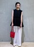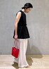 こんにちは! 心斎橋PARCO店の畑です。 いつもご覧頂きありがとうございます! 今回はティアードノースリーブTEEをシアーのパンツと合わせてみました! ウエストの位置も高く見えスタイルアップできるこちらのカットソー。黒を選ぶと秋まで長くお使いいただけますよ! モノトーンコーディネートだったので、ポイントに赤のバッグを合わせアクセントにしてみました! 気になる商品がござましたらぜひチェックしてみてくださいね!!