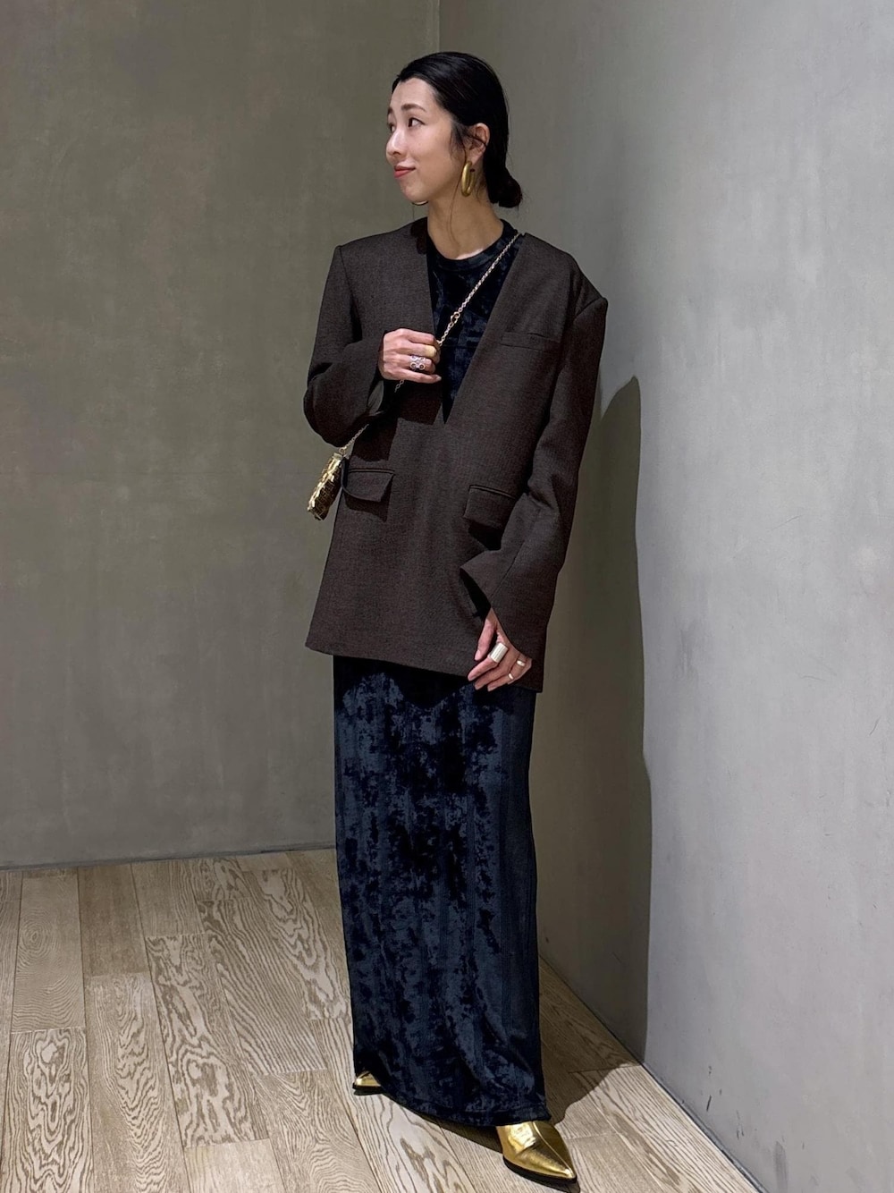 こんにちは! 心斎橋PARCO店の畑です! いつもご覧頂きありがとうございます! 今回はMiller for ADAM ET ROPE'の別注ベロアシリーズのセットを着用してみました!! 程よいクラッシュ感があり、光に当たるとベロアの立体感がとても素敵なセットアップ。 よく見るとリブのようなストライプ柄がちらりと見えるのでカジュアルにも着やすいです!! 今回はクルーネックのプルオーバーとスカートをセットアップでワンピース風に着用して見ました! 上からジャケットライクブラウスを着るだけで素敵なレイヤードスタイルの完成!! ジャケットの綺麗目感とベロアのドレッシーな素材感が好相性ですよ! ぜひチェックしてみてくださいね!!