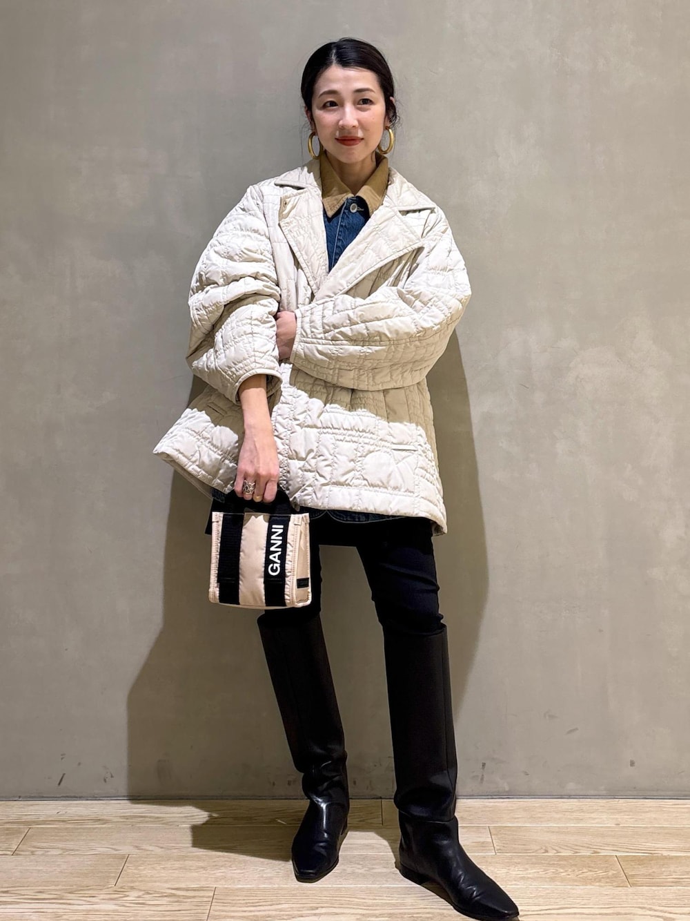 SAKI(ADAM ET ROPE' 心斎橋PARCO)のトートバッグ「【GANNI for ADAM ET ROPE'】Recycled tech Mini Tote」を使ったコーディネート