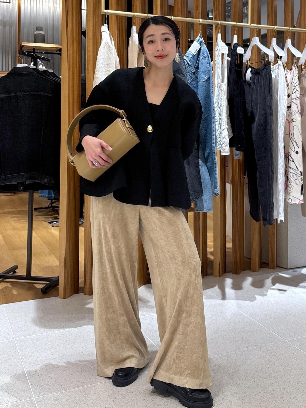 こんにちは! 心斎橋PARCO店の畑です。いつもご覧いただきありがとうございます! 今回はエッグブローチ付きペプラムカーディガンのご紹介です。 名前の通りブローチがワンポイントになるカーディガン。綺麗めなスタイリングからカジュアルまで汎用性が高く一枚持っているととても便利なんです! 今回はミラーのニットパンツとカジュアルスタイリング。カラーはベージュ×ブラックの落ち着いたら上品なカラーでまとめてみました! ぜひ気になる商品がございましたら、チェックしてみてくださいね!!