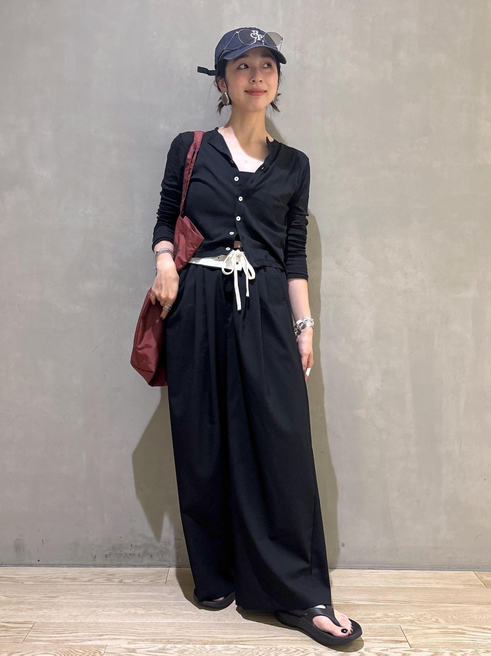 こんにちは! 心斎橋PARCO店の畑です。 いつもご覧いただきありがとうございます。 今回はリアルバイしたトップスとパンツをご紹介します。 程よくシアー感のある素材のカーディガンに、ウエストにデザインのあるパンツがポイントのコーディネート。オールブラックですが、ウエストにポイントがあることで、コーデのアクセントになります。 足元は梅雨時期に向けてラフなサンダルで。 キャップなどをうまく組み合わせ綺麗目になりすぎないようスポーティさもプラスしてみました。 ぜひチェックしてみてくださいね!