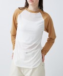 SAKI(ADAM ET ROPE' 心斎橋PARCO)のTシャツ/カットソー「SHEER RINGER RAGLAN LONG SLEEVE」を使ったコーディネート