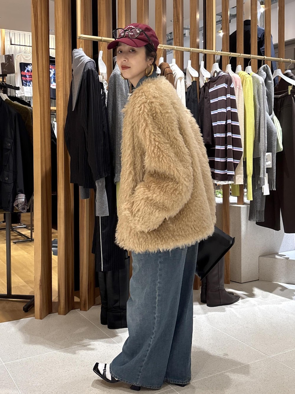 こんにちは! 心斎橋PARCO店の畑です。 いつもご覧いただきありがとうございます! 今回はSteiffファーコートを使ってコーディネートしてみました! ファーコートってボリューム感たっぷりなので、くまさん感が気になる方も多いはず! キレイめに合わせすぎるとエレガント見えしちゃうので、あえてデニムで合わせるのがおすすめですよ! カジュアルなアイテムとのミックスコーデで、おしゃれ度アップするので、ぜひチャレンジしてみてくださいね!