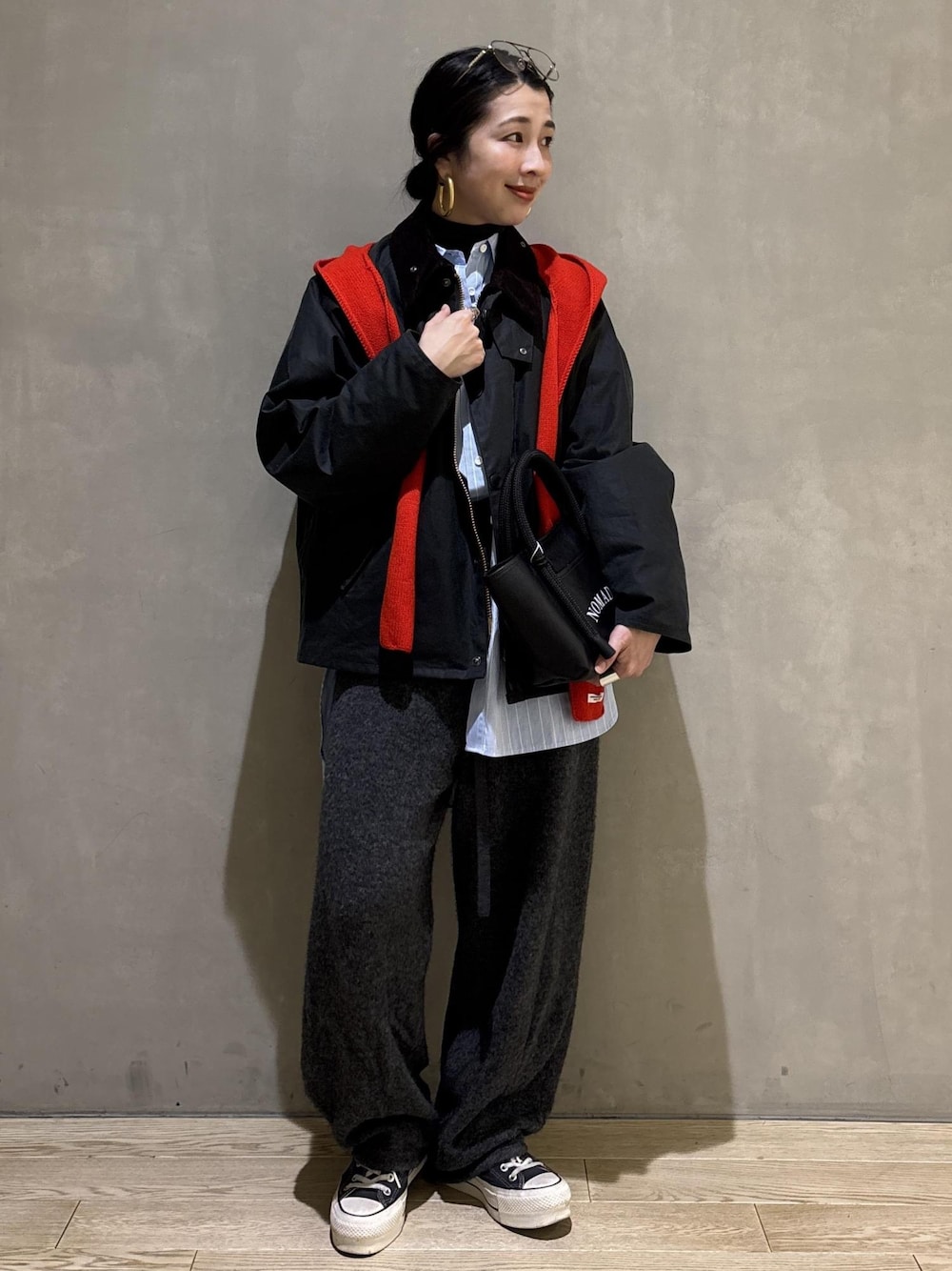 こんにちは! 心斎橋PARCO店の畑です! いつもご覧いただきありがとうございます! 今回は【Barbour(バブアー)】OS TRANSPORT WAX JACKETを着用してみました! クラシカルなシャツとニットパンツのカジュアルなボトムとの組み合わせで少しメンズライクな雰囲気でまとめてます。 全体的にダークカラーで渋いカラーが多いので、あえて赤をアクセントに取り入れて一気に華やかさな印象に。 ぜひ参考にして頂けますと嬉しいです!